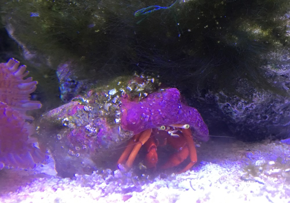 Intrepid Hermit Crab – rare shot of his eyeball stalks there. Probably off his tits on fish blood, like a tramp on a Tennents bender.